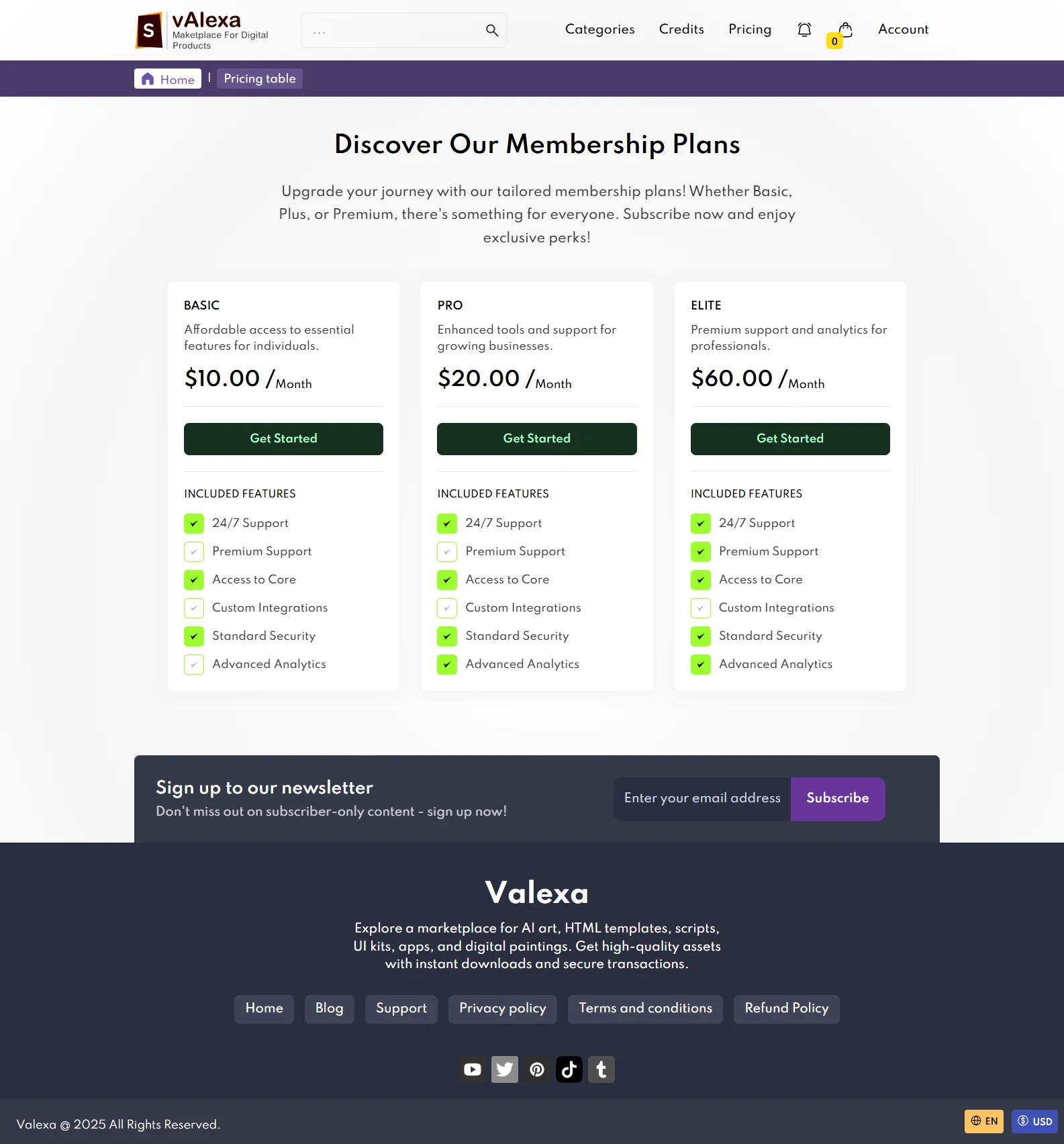 Valexa is the go-to solution for entrepreneurs seeking a robust and subscription-driven digital marketplace. Whether you’re selling scripts, templates, ebooks, audio files, or any other digital assets, Valexa empowers you with an all-in-one platform that maximizes sales and enhances customer engagement.