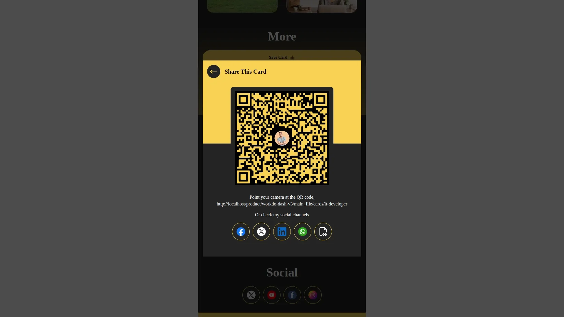 3. Share Business vCard instantly via the dashboard QR code