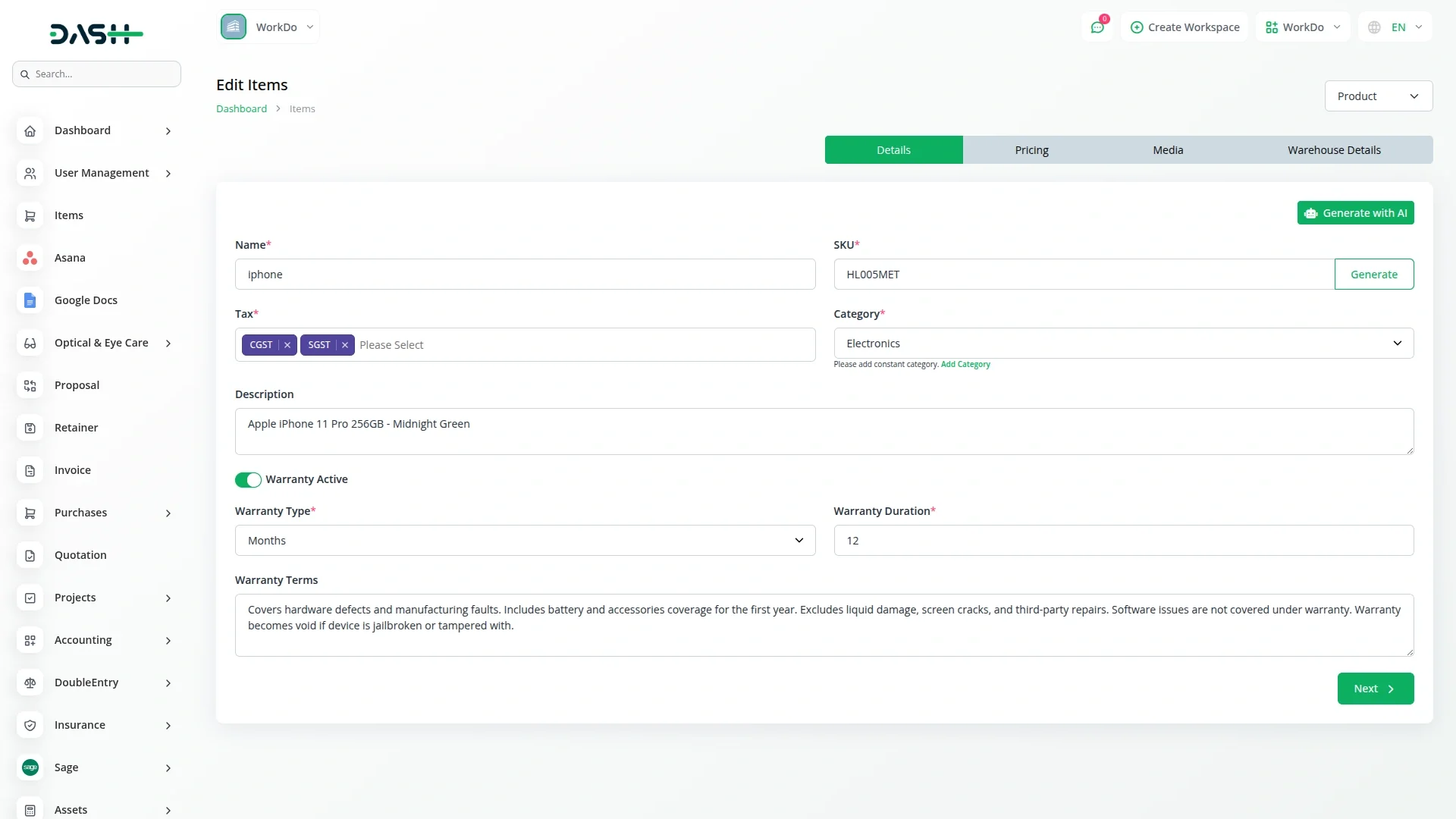 Warranty – Dash SaaS Add-On.Efficiently track and manage product warranties with the Warranty Add-On for Dash SaaS. This tool allows businesses to record warranty details, set reminders for expiration dates, manage claims, and maintain a centralized database for all warranty-covered items. Ideal for retailers, service centers, and manufacturers looking to improve post-sales service and customer satisfaction.