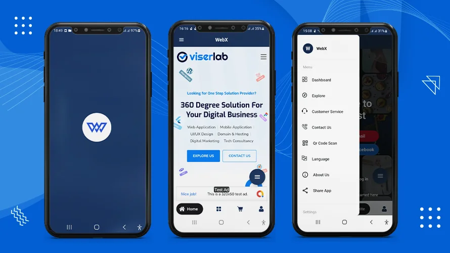 WebX is your go-to solution for effortlessly turning web content into a customizable mobile app. Our cutting-edge Flutter application, compatible with both Android and iOS, ensures easy access to your business and services via mobile devices. Transform your website into a mobile app in just seconds. With WebX, you can customize onboard screens, manage multiple ads, and personalize navigation bars, floating buttons, and menus including multiple items. It also allows you to enable and disable all the features through general settings and many more customization.