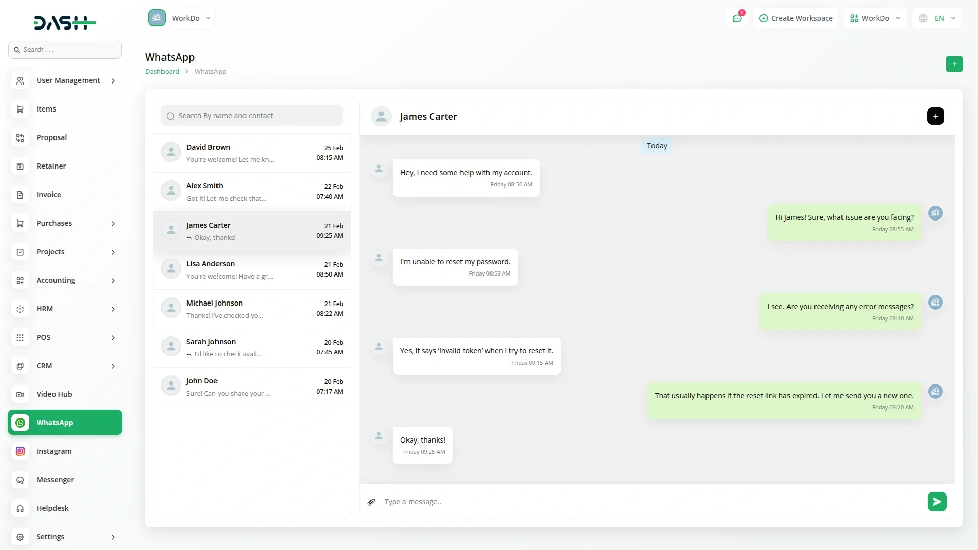 WhatsApp Chat – Dash SaaS Add-On, a powerful tool to integrate WhatsApp directly into your SaaS platform. This add-on allows instant messaging, automated replies, and seamless chat support to improve customer experience and engagement. Ideal for sales, service, and support teams, it ensures fast, personalized communication. Boost response times, drive conversions, and deliver superior service through a scalable and user-friendly WhatsApp Chat integration.