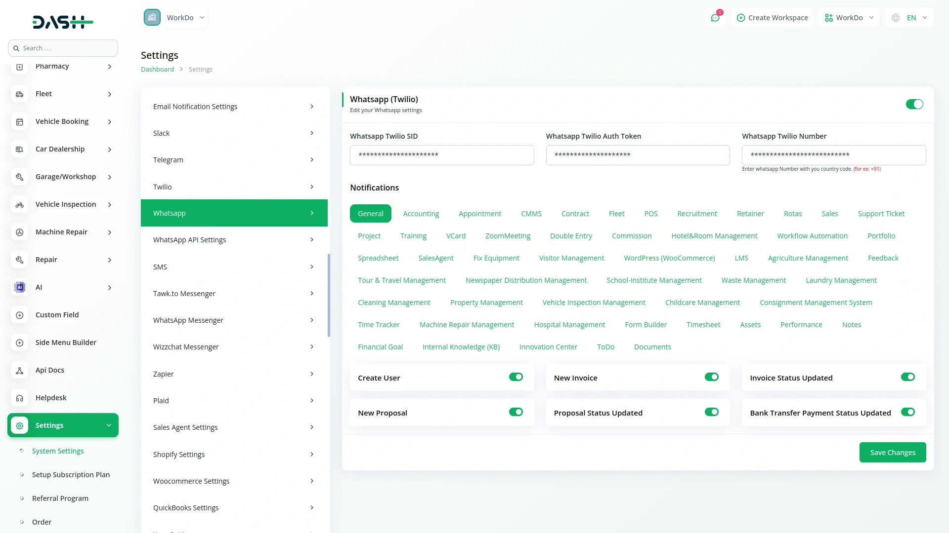 This Add-On seamlessly integrates with WhatsApp (Twilio), allowing businesses to use their WhatsApp-enabled Twilio number for communication. Users can configure their Twilio credentials, such as Account SID and Auth Token, within WorkDo Dash to establish a secure connection. Once integrated, the system ensures smooth and reliable message delivery, leveraging Twilio’s robust infrastructure for high performance.