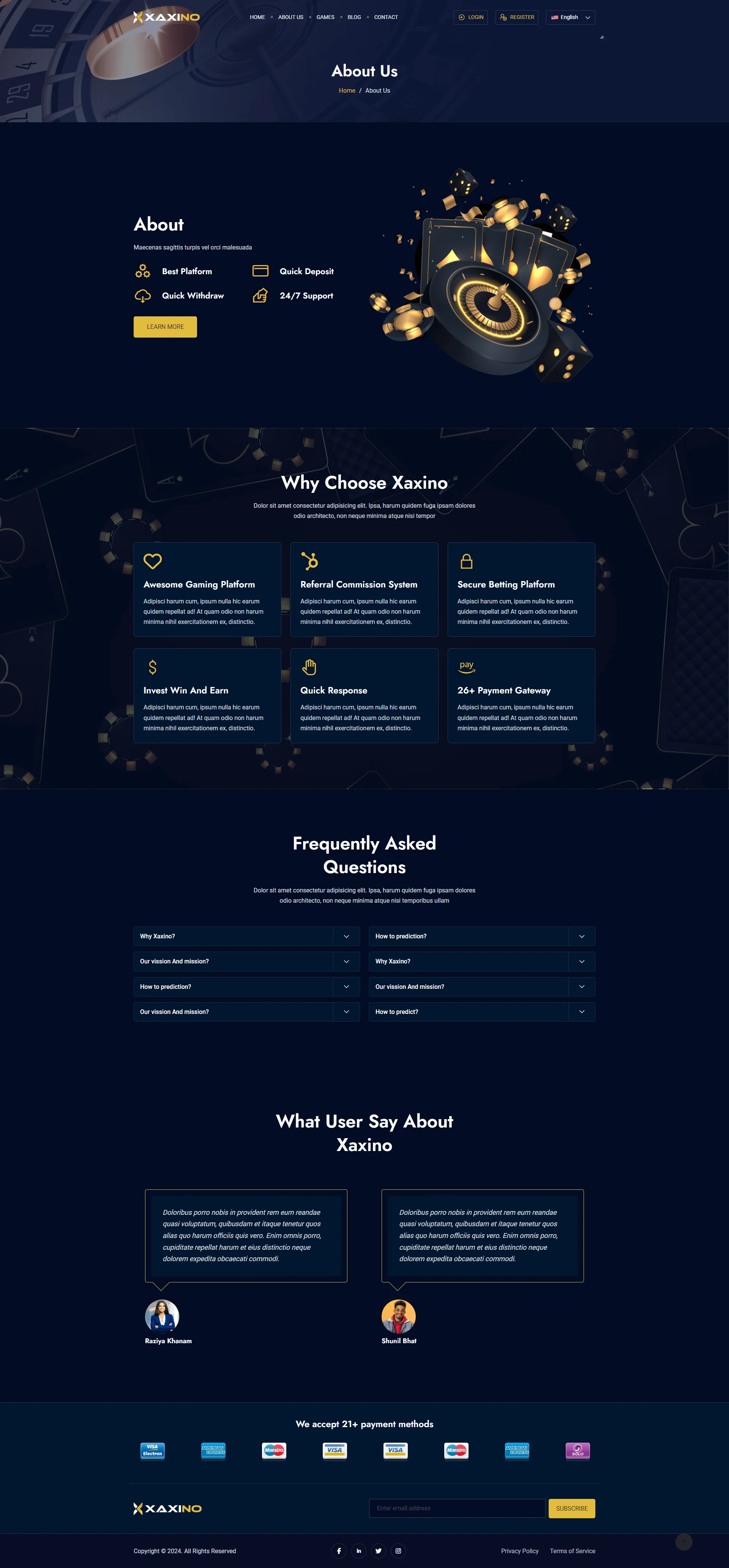 Xaxino is a Laravel-based guessing and casino platform, ideal for launching an online prediction and casino website. Built with insights from leading platforms, Xaxino offers a complete setup to manage unlimited users, draws, transactions, and automated payments through 30+ gateways. With 15+ casino prediction games, high security, a premium theme, and HD animations – all in a responsive, user-friendly interface. Xaxino provides a robust, ready-to-use platform with dedicated support.