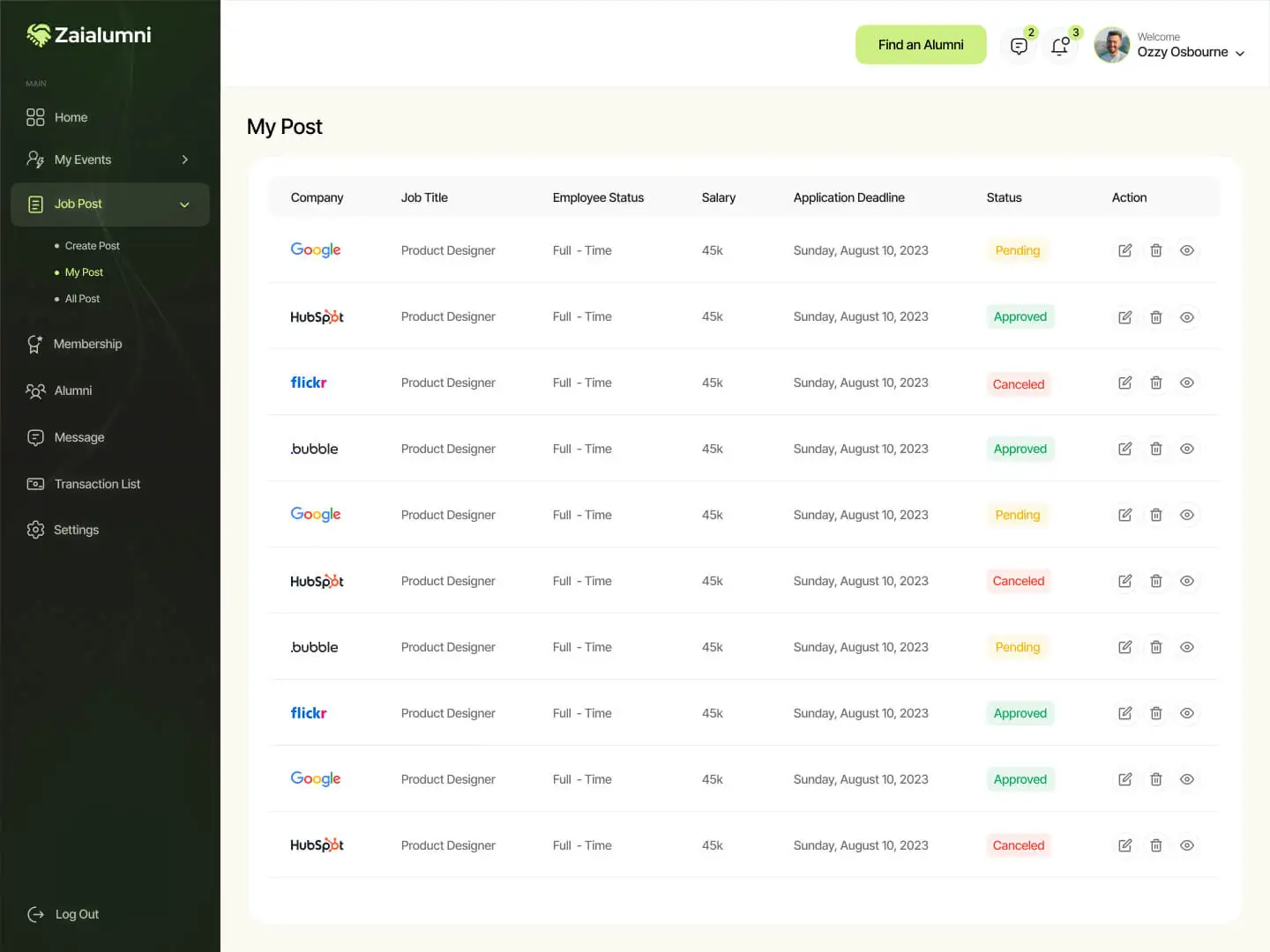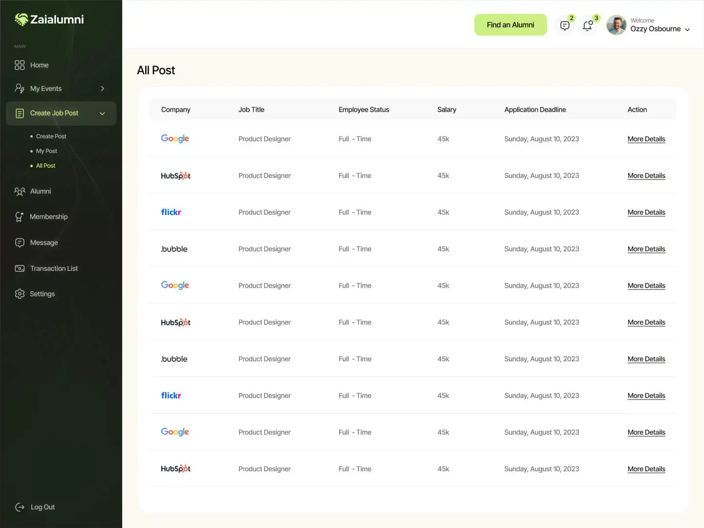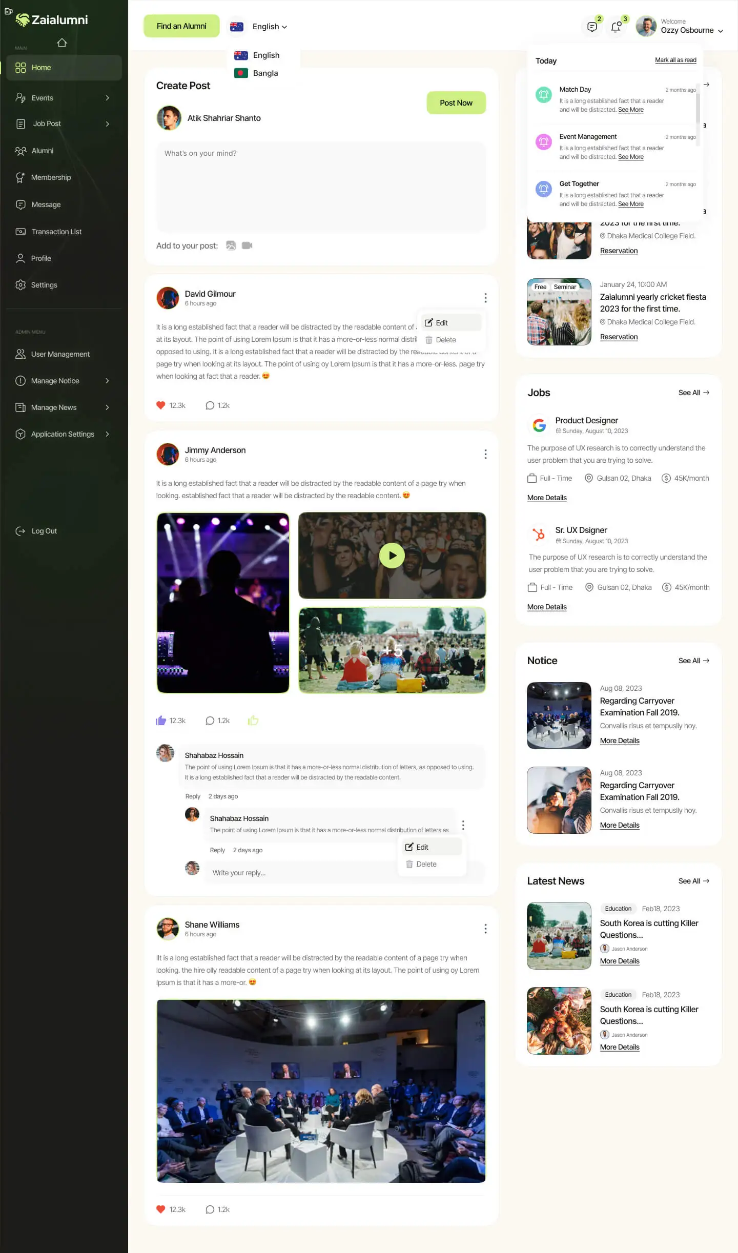Announcement Board: Administrators can post important notices and updates to inform alumni about news and events.